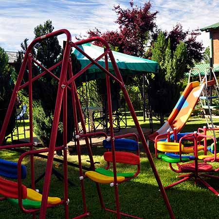 El parque de 1000 m2 dispone de fogones individuales para asados y juegos infantiles.